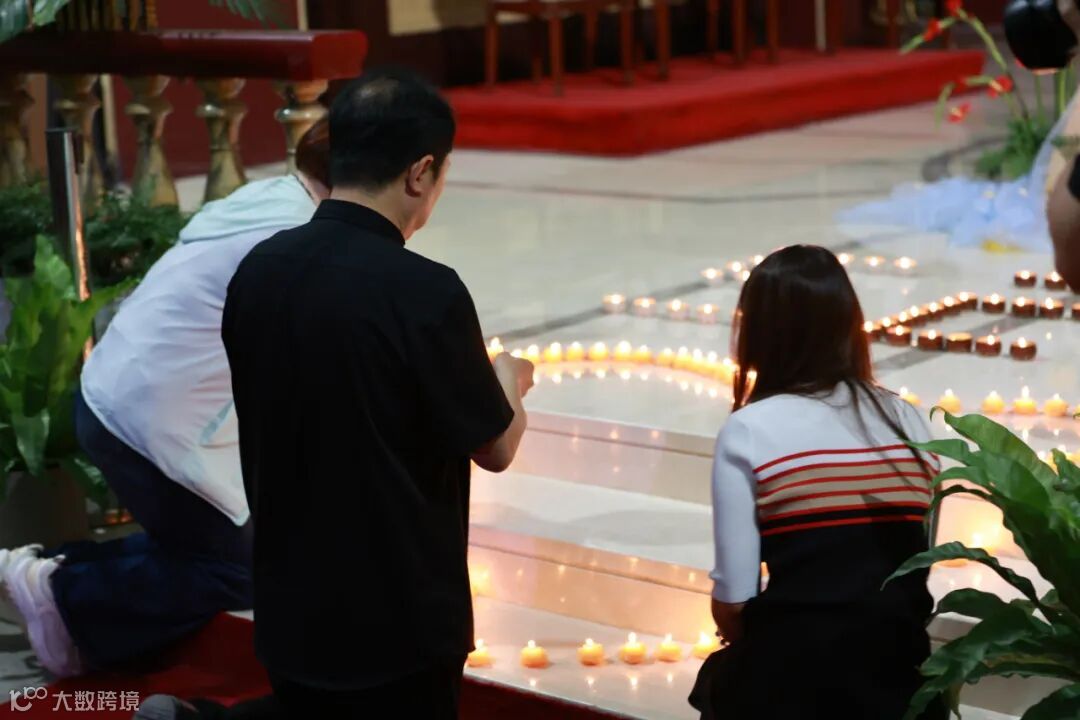 在主日感恩祭读经员的带领下,大家一起诵念了《佘山圣母诵》。89颗火热的心点燃了圣母像前89只玫瑰蜡烛,并祈愿光照普世、光耀中华大地。
