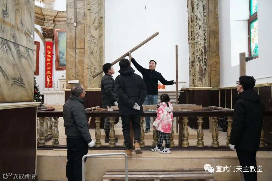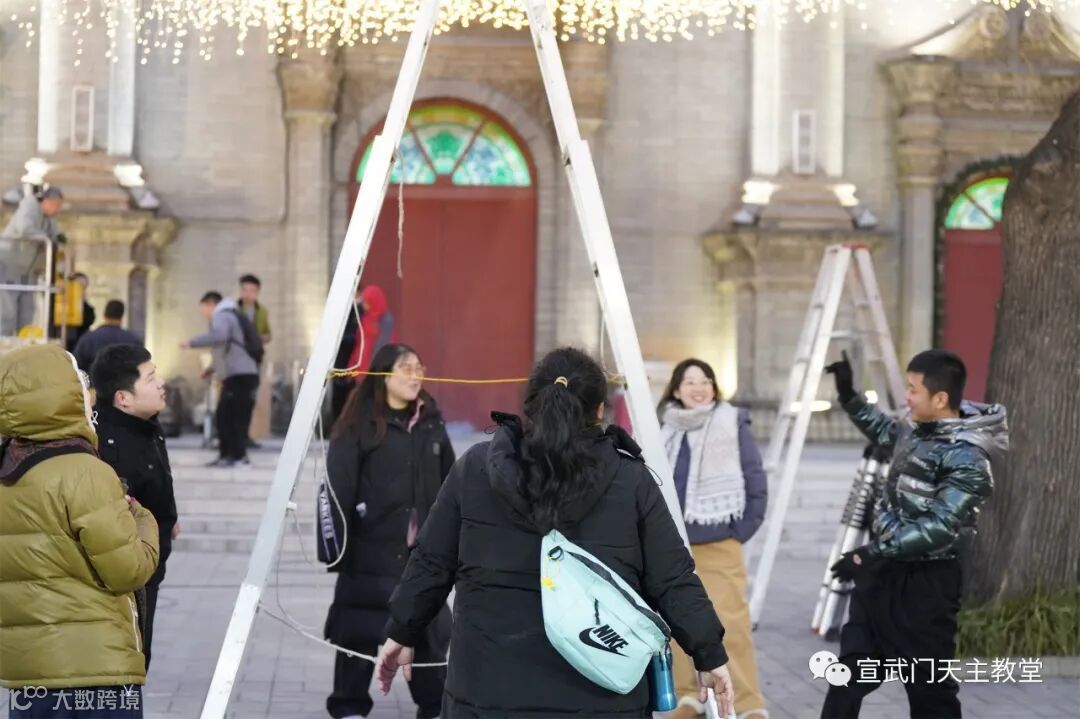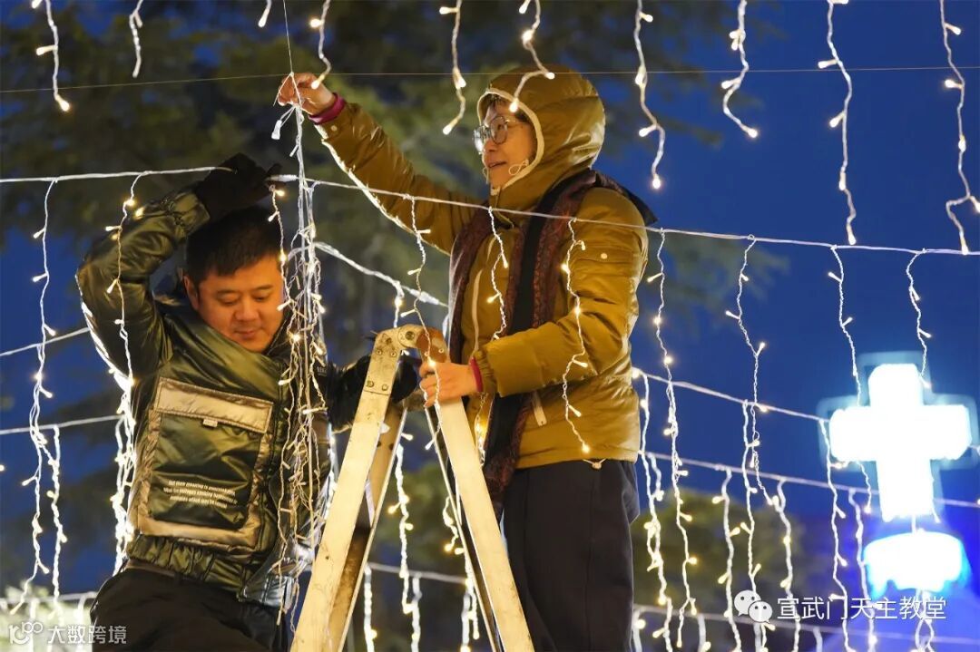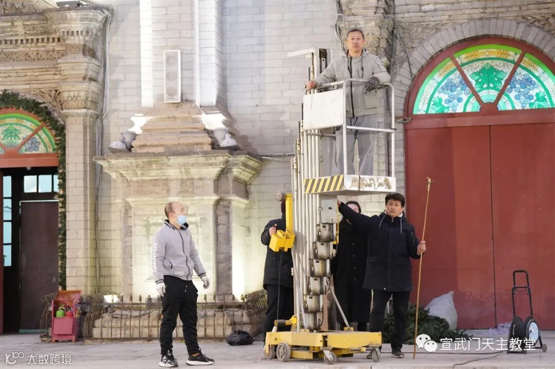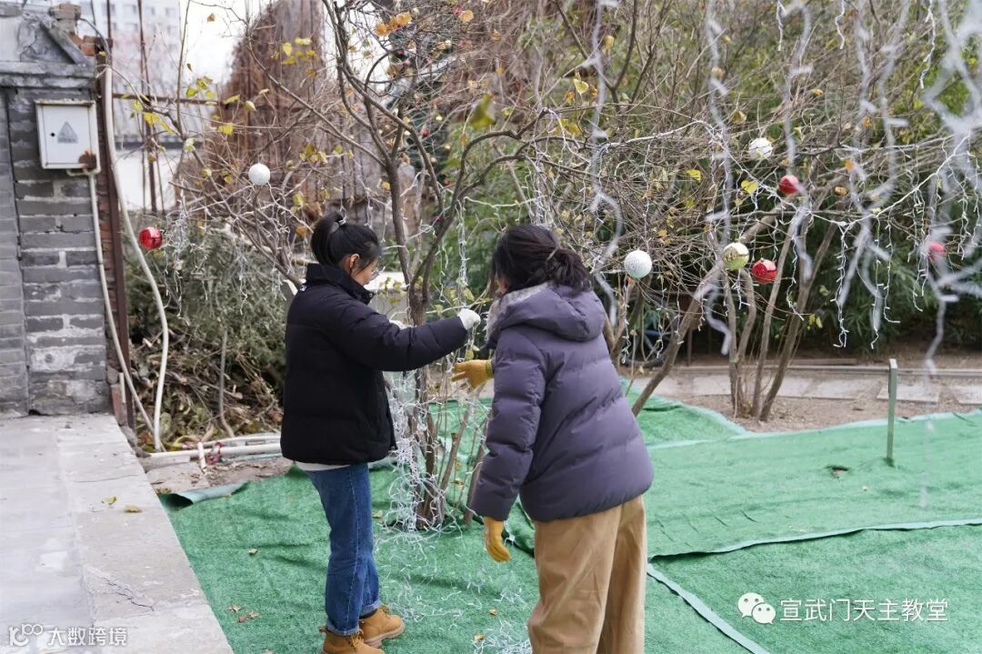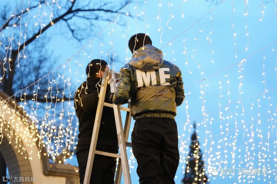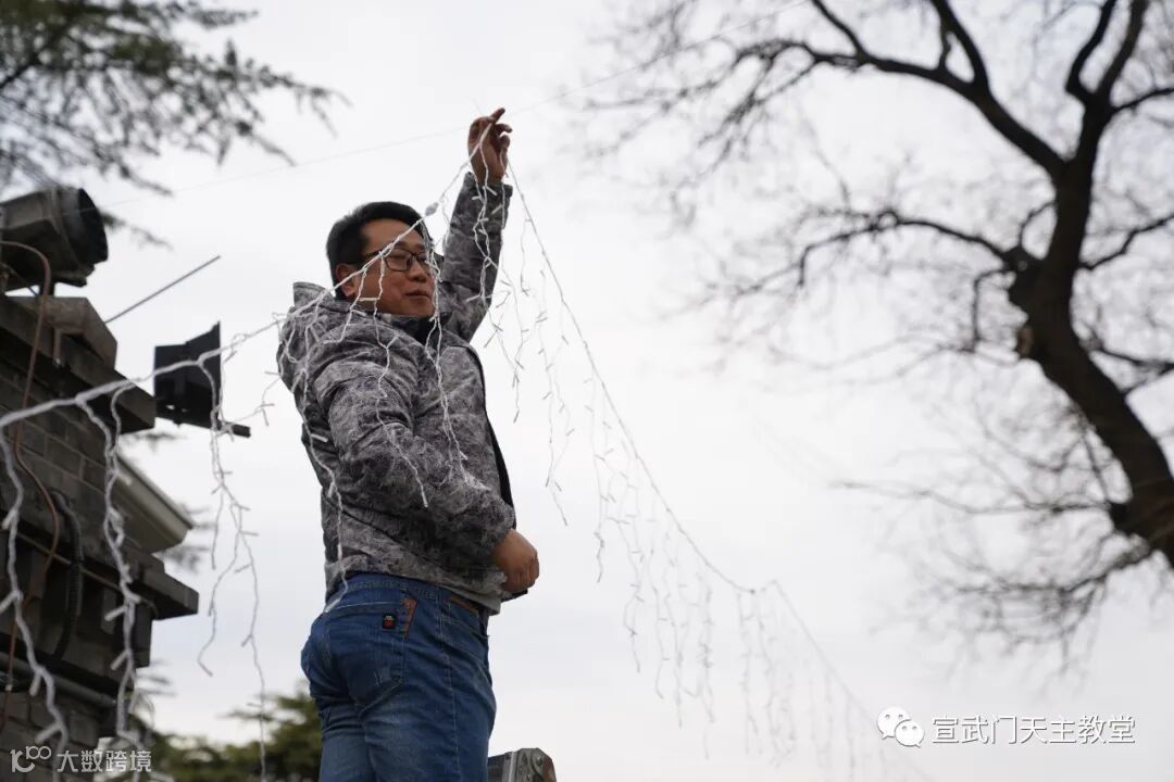 当天由各团体成员,一起把堂区东西院子整理完毕,把大堂里的马槽搭建完毕,把圣诞树装点完毕,把东堂院吊坠灯安装完毕,把圣母山彩灯装饰完毕...