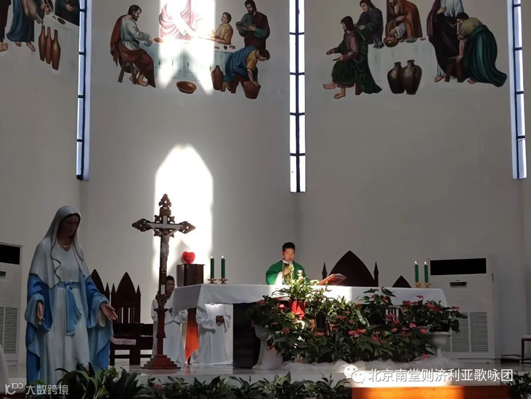 落日的余辉撒进这座庄严的教堂,十字架的光辉照耀着这里,让我们的心在酷暑的燥热中瞬间得到了清凉的慰藉。南堂则济利亚唱经班的兄弟姐们受到本堂神父的邀请,参与并服务了感恩圣祭,收获了满满的恩宠。