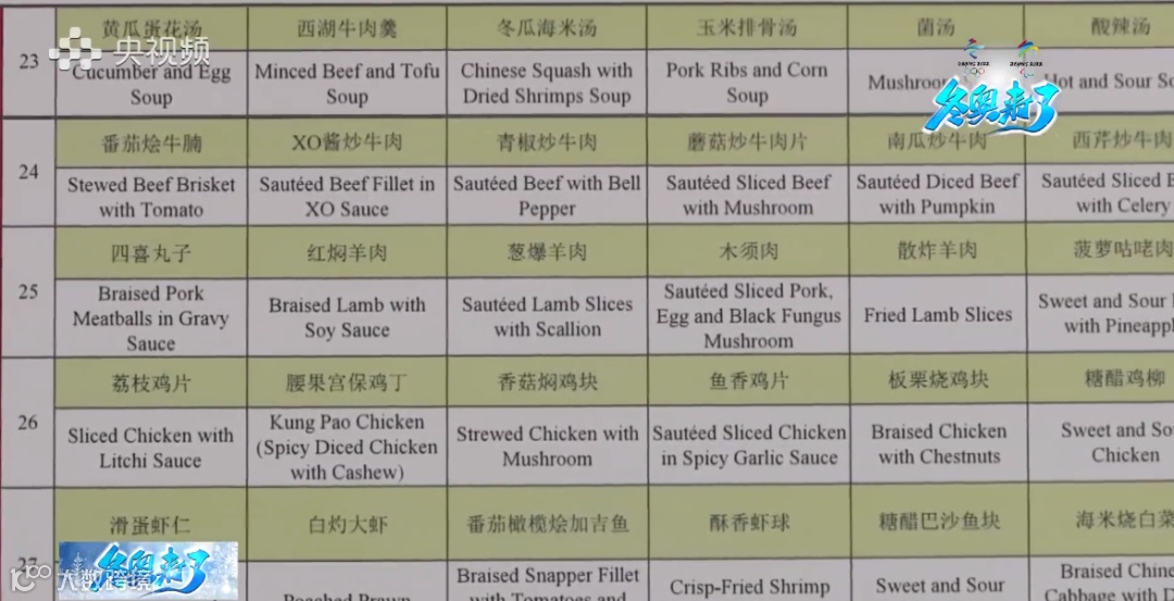此前,2022年冬奥会运动员菜单发布来自世界各地的678道特色菜品上榜。