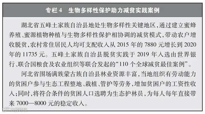 中国坚持在发展中保护、在保护中发展,提出并实施国家公园体制建设和生态保护红线划定等重要举措,不断强化就地与迁地保护,加强生物安全管理,持续改善生态环境质量,协同推进生物多样性保护与绿色发展,生物多样性保护取得显著成效。