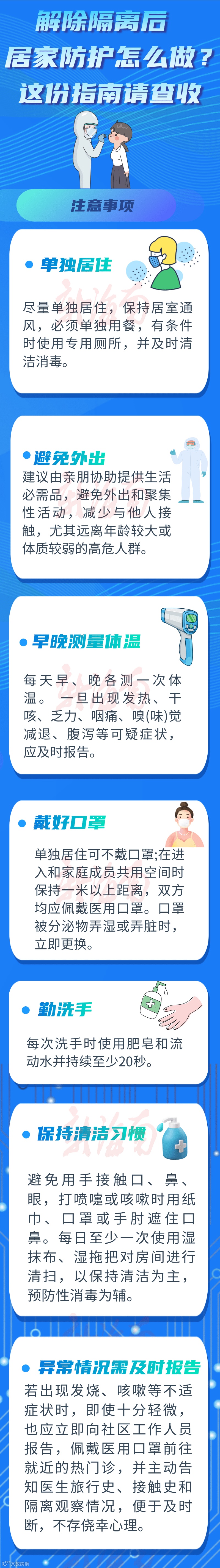 疫情期间,解除隔离观察人员回到家后,仍需做好哪些防护措施?有哪些注意事项?这份居家防护指南请查收~