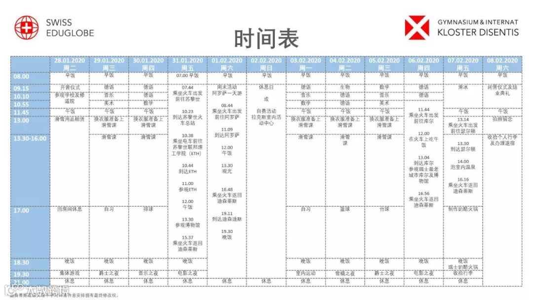 对于那些想在瑞士就读高中的学生们而言,该夏令营活动也是一个让他们可以初步了解瑞士学校的有价值的选择。