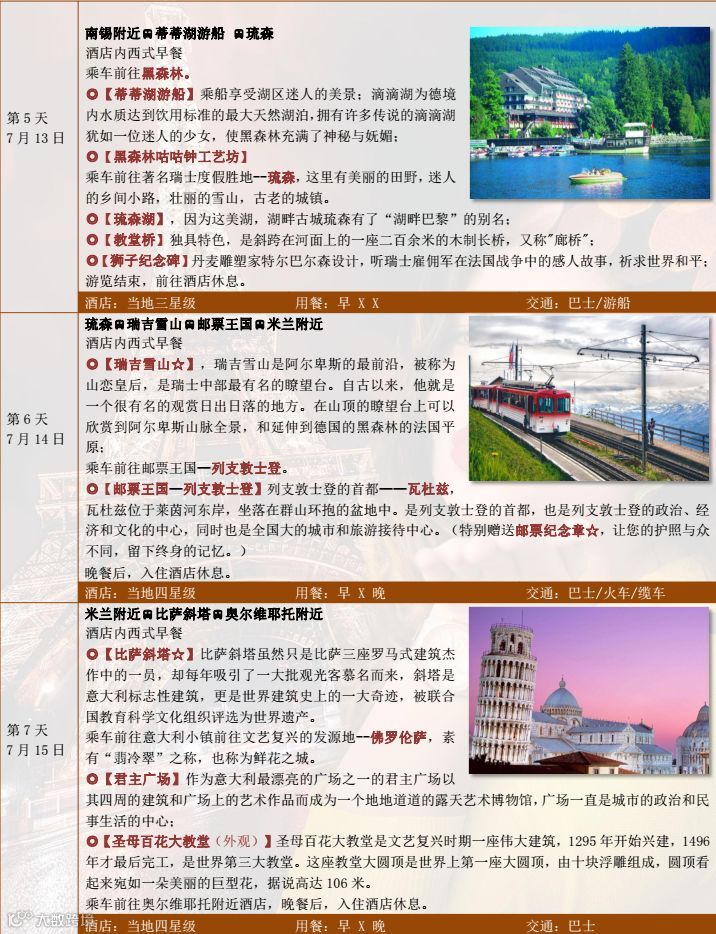 HU 比奥德法意瑞 6 国 13 日卢浮宫(含讲解) +维罗纳-爱情小屋+瓦腾斯水晶世界(含门票)+香水博物馆(含讲解) +巴黎圣母院+巴黎歌剧院+特色双船【塞纳河游船+蒂蒂湖游船】 +瑞吉雪山+比萨斜塔+邮票王国(赠送邮票纪念章) +梦幻双堡+科隆大教堂+香水博物馆(含讲解) +巴黎半天自由活动