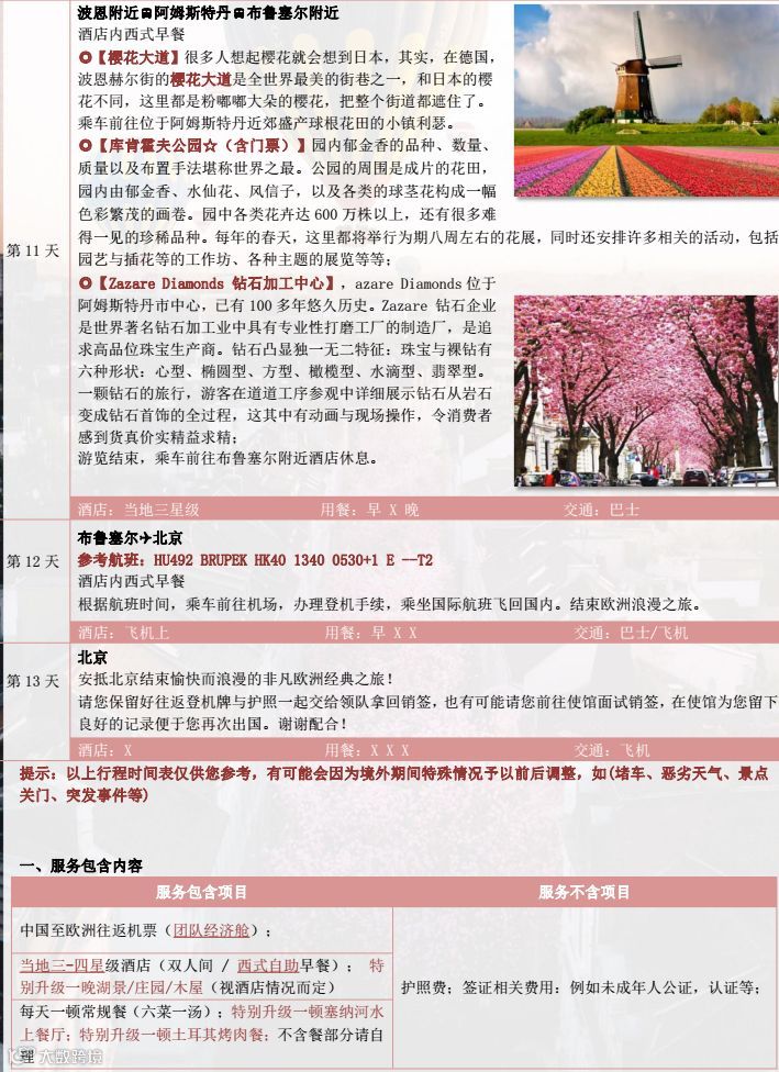 HU 荷奥德法意瑞 6 国 13 日卢浮宫(含讲解) +两大赏花胜地【郁金香公园(入内) +樱花大道】 +香水博物馆+巴黎圣母院+巴黎歌剧院+特色双船【塞纳河游船+蒂蒂湖游船】 +瑞吉雪山+比萨斜塔+邮票王国(赠送邮票纪念章) +巴黎一整天自由活动