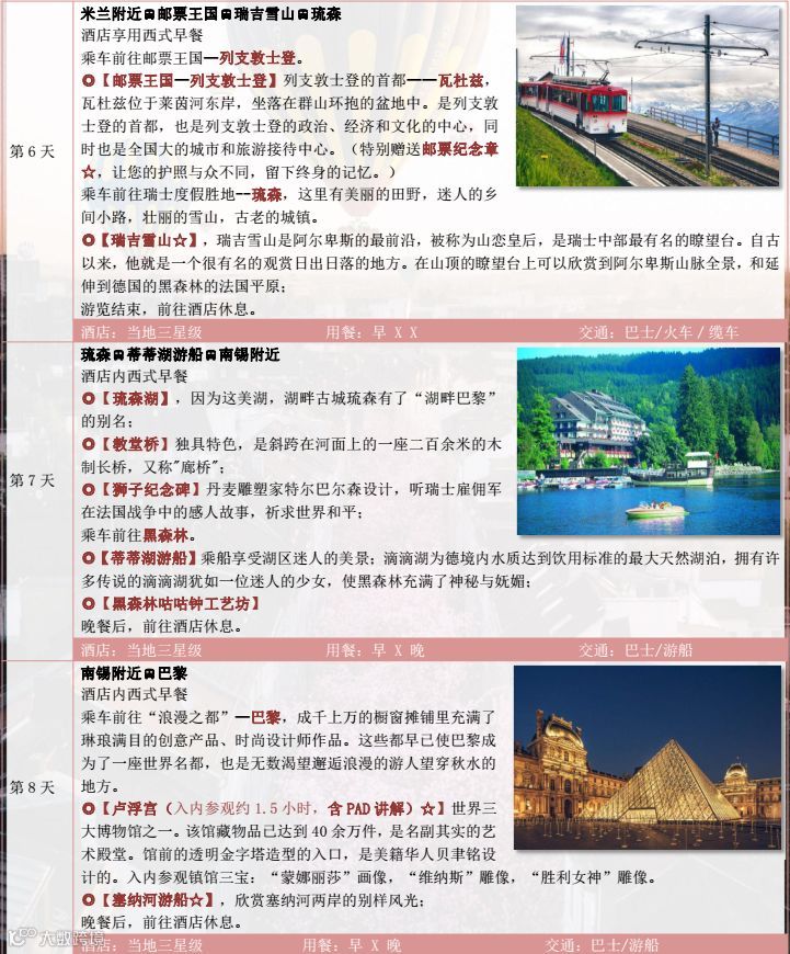 捷奥德法意瑞 6 国 13 日卢浮宫(含讲解) +特色双船【塞纳河游船+蒂蒂湖游船】 +香水博物馆(含讲解) +巴黎圣母院+巴黎歌剧院+巴黎一整天自由活动+阿尔卑斯山(含火车/缆车) +邮票王国(赠送邮票纪念章) +比萨斜塔+追寻茜茜公主+千塔之城-布拉格+柏林墙+两大美食【塞纳河船上餐厅+土耳其烤肉】
