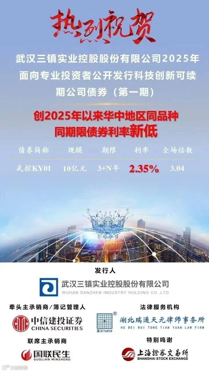 作为武汉市重要的国有控股企业,近年来,武汉控股公司持续加码科技创新,在环保水务、智慧城市等领域深化布局,此次债券发行为其提供长期资金支持,进一步巩固其在资本市场的融资能力。公司谨此对广大投资者的信任与支持表示衷心感谢,并将以更优异的经营业绩回馈资本市场。