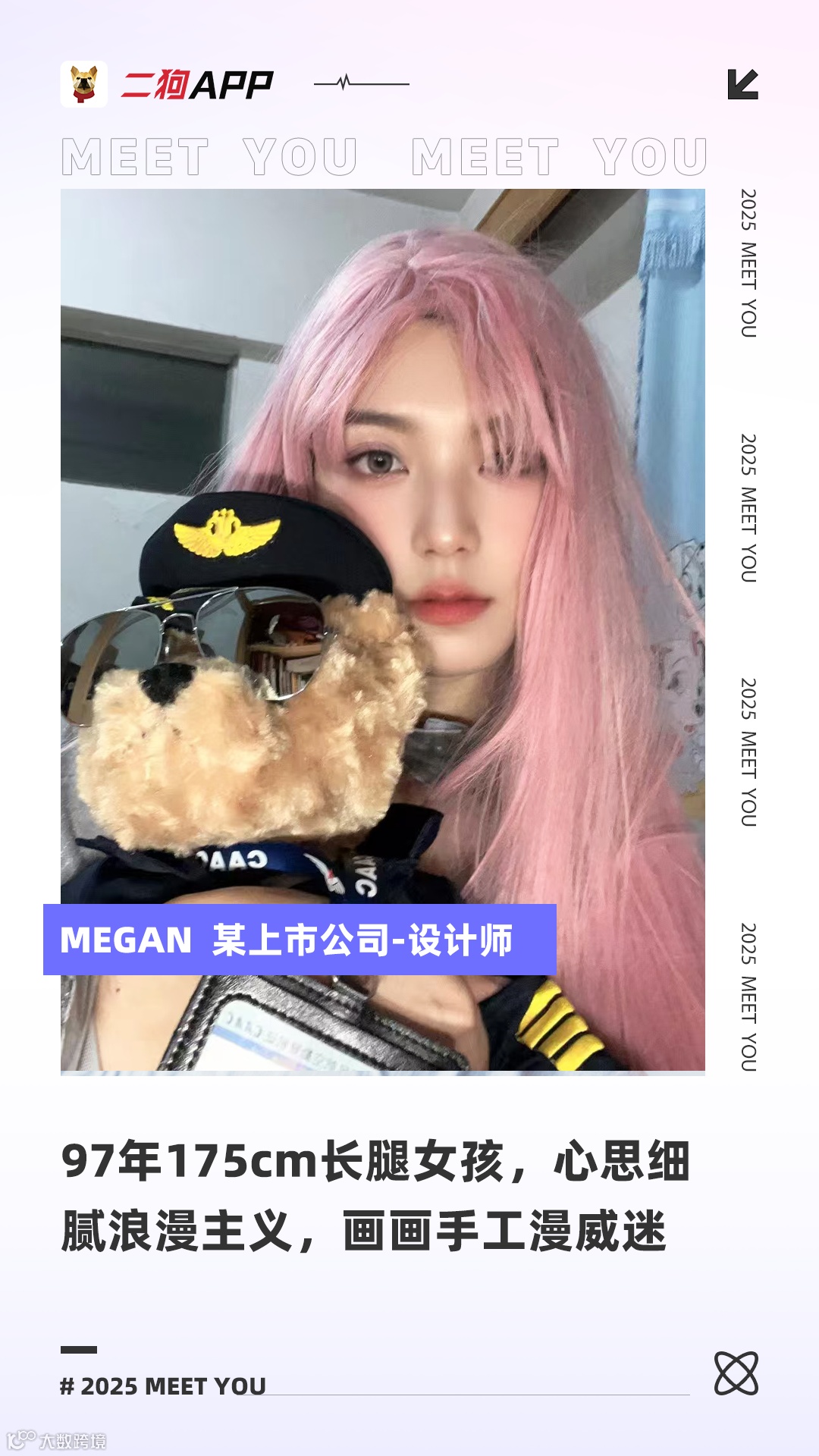 对爹系少年感的男生没有抵抗力,喜欢高个子,性格温和体贴,情绪稳定。🈚抽烟酗酒赌博等不良嗜好,不会对猫毛过敏。如果对方对艺术哲学领域感兴趣就更好了。