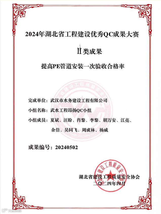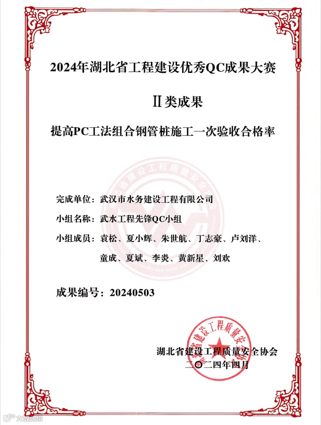 近日,湖北省建设工程质量安全协会和湖北省市政工程协会传来喜讯,工程公司报送的QC成果在激烈的角逐中脱颖而出,6项QC课题荣获Ⅱ类成果。