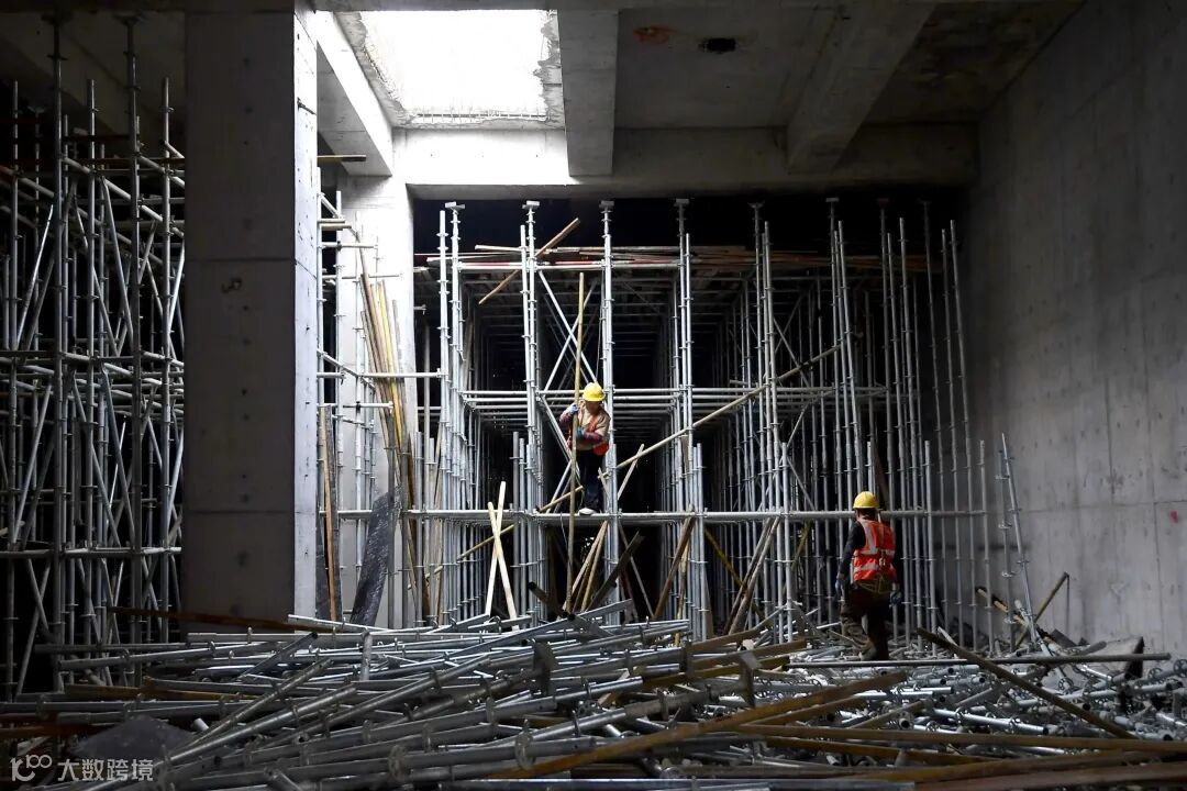 地下箱体地下一层,工人们正在拆除前期搭建的脚手架