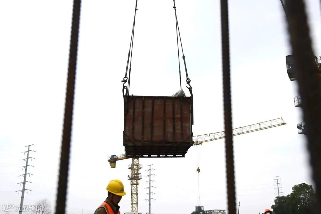 在施工现场,项目1.4万平方米施工范围内,地下箱体外观已清晰呈现,在地下一层、二层,工人们正在拆除前期搭建的脚手架。这些拆除下来的脚手架被整齐地码放在吊笼里,置于地下吊装孔内,被分布于地面的4台起吊机不断吊离地下,于地面集中清运。