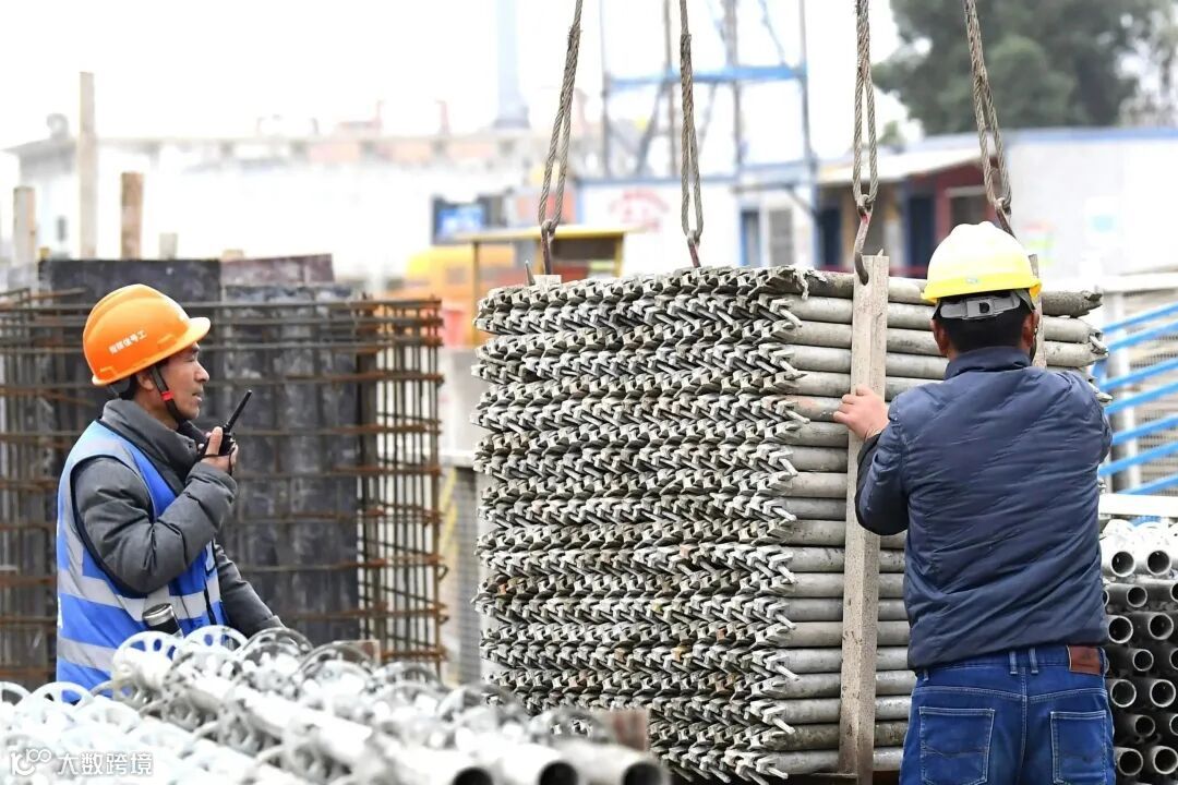 4条塔吊大臂凌空挥舞,成捆的脚手架平稳移位,正在地面指挥塔吊的指挥员曾艳萍说,为确保4座塔吊同步施工安全,地面指挥员需要盯紧现场,随时与塔吊操作员保持沟通,每天高强度工作10小时以上。