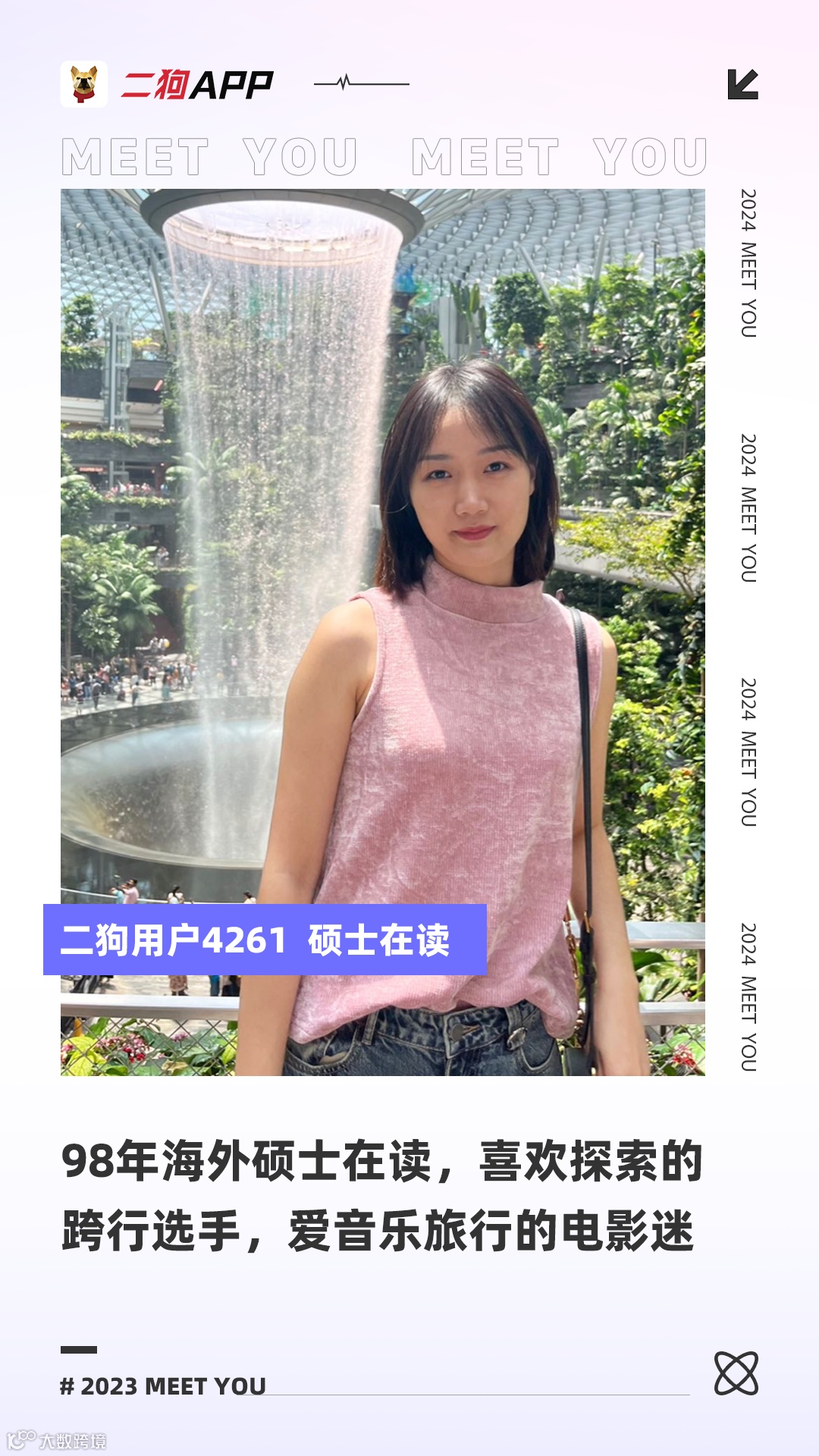 本科毕业五年,从事过空乘,中职英语教师等职业,目前正在马来西亚留学。平时的我,喜欢沉浸在电影的世界里,也热爱到处旅游,感受不同的风土人情。脱口秀是我的快乐源泉,爬山和游泳则是我保持活力的秘诀。性格上,我比较直率,但也很温和,容易相处。ISFP,期待在这里,能遇到那个懂我、合拍的你。