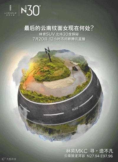 2017年,林肯中国与腾讯新闻联合开启一场名为#林肯SUV北纬30度寻造不凡#的主题活动,此次活动以网络直播为主体,通过12小时不间断的直播形式,以一场独特的营销活动开启林肯的盛夏狂欢季。