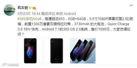 5月23日,360手机在北京召开“更好,没有尽头”主题发布会,正式推出青年新旗舰N5升级机型——360手机N5s 。
