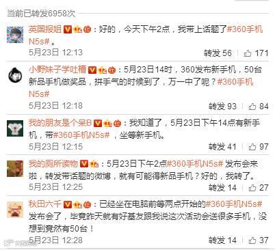发布会之前,360针对此次活动,选取各大网站以及kol进行活动推广以及新品宣传。微博话题#360手机N5s#达到上亿的曝光量,引发众网友热议。