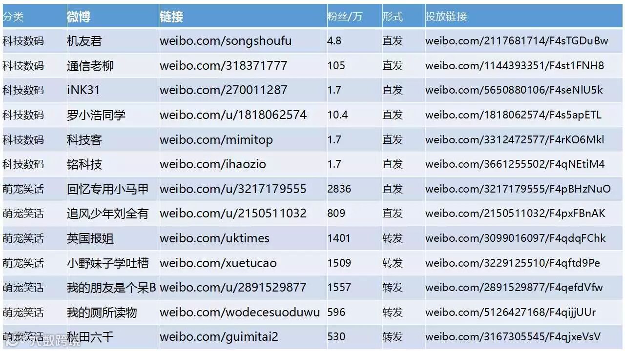 此次活动的目标人群定位是“科技发烧友”,所以选用了微博kol账号“机友君”、“科技客”等,因此类账号垂直度较高,粉丝多为爱科技的年轻人。同时,选取“回忆专用小马甲”、“追风少年刘全有”等粉丝较多,影响力较强的账号,达到推广的效果。