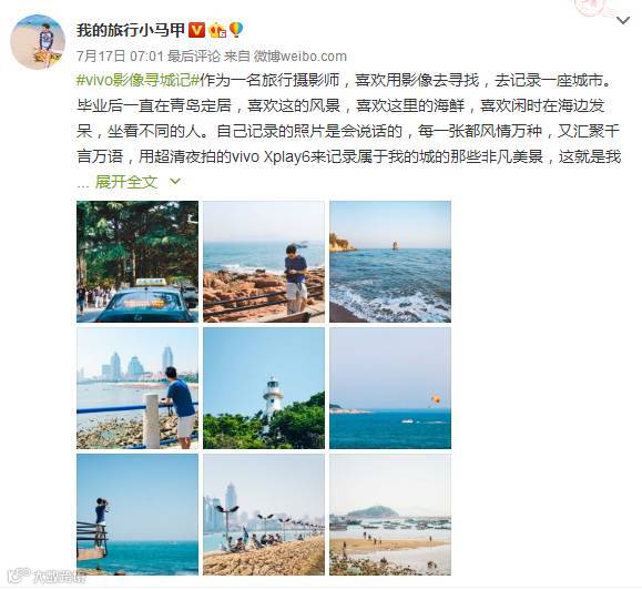 在主打情怀的同时,vivo此次活动的传播联合微博kol进行推广,在选择的媒体属性方面,抓住受众的年轻人属性以及此次活动的特殊性,选取微博社交平台以及旅游摄影类kol账号进行话题推广以及活动宣传。