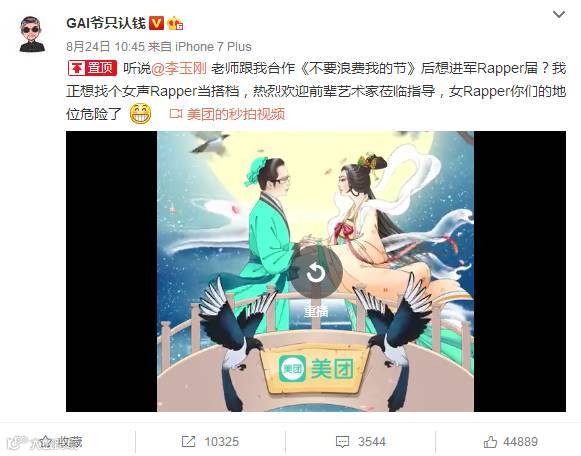 趁着七夕情人们约会之际,美团在此节点,特邀《中国有嘻哈》里的rapper GAI,联手李玉刚,合唱一首《不要浪费我的节》,给自己加戏——约会吃饭?上美团啊!订购酒店?有美团啊!迪士尼游玩?找美团啊!