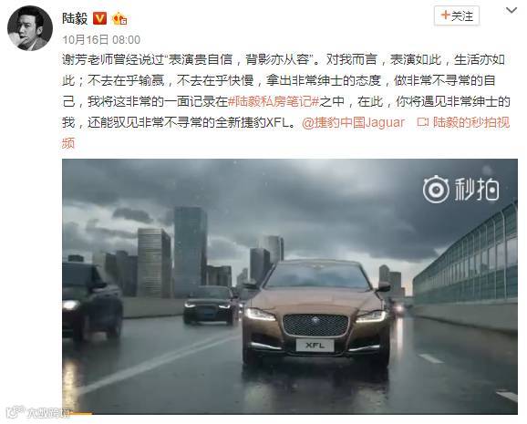 是的,作为捷豹FXL车主,陆毅携手捷豹,以从容、笃定与绅士的典范,传达了自己的自信人生观。