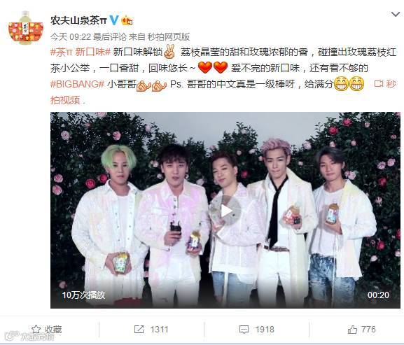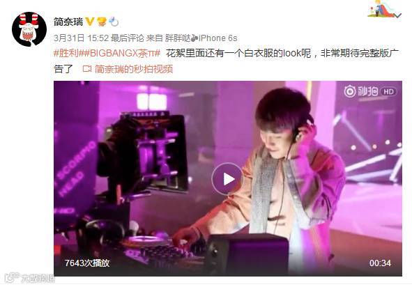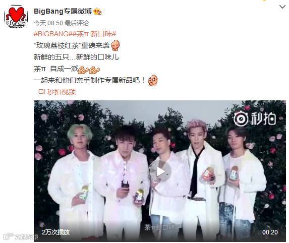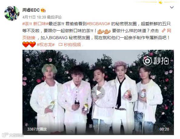 BIGBANGX茶π广告片微博播放量336万次,腾讯视频播放次数:80.4万次