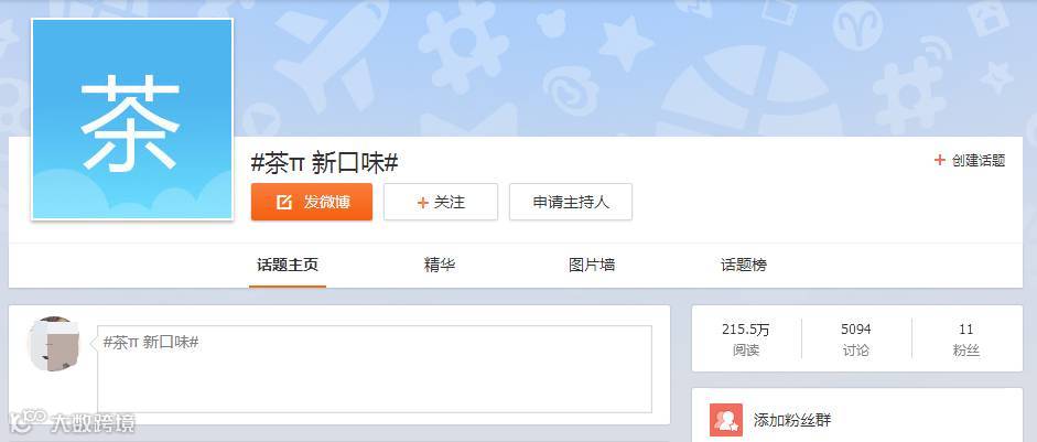 话题 #茶π新口味# 累计阅读215.1万,讨论5094(部分效果来自于全网投放)
