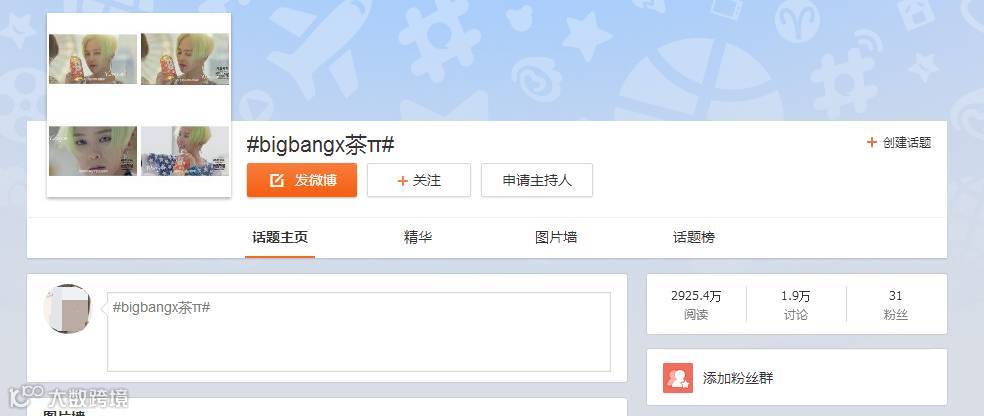 话题 #bigbangX茶π# 累计阅读2925.4万,讨论1.9万(部分效果来自于全网投放)