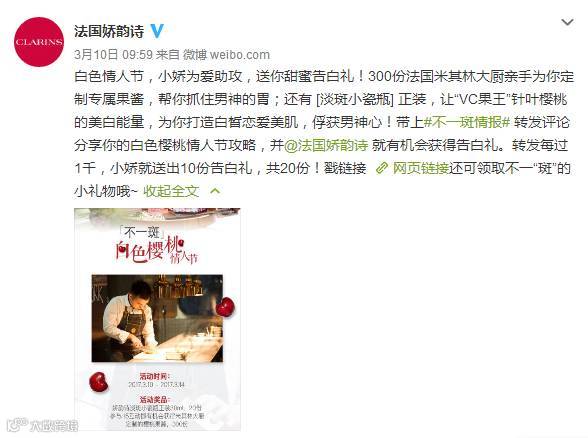 经过逾20年对亚洲肌肤的美白科研探索,此次娇韵诗的“淡斑小瓷瓶”系列新品,借助白色情人节这一热门节点推出,特邀明星红人汪涵等,以#不一斑情报#为话题,开展新品的推广以及线上营销。