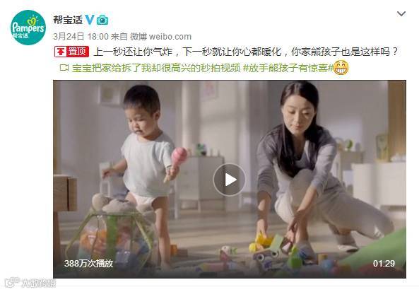 帮宝适作为纸尿裤的行家,在抓住纸尿裤产品的不足点之后,开发新产品,同时贴合“熊孩子”的话题,利用直观有效的视频来展现产品的特性,直击消费者的痛点,达到营销推广的目的。