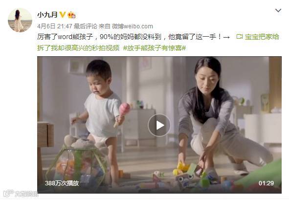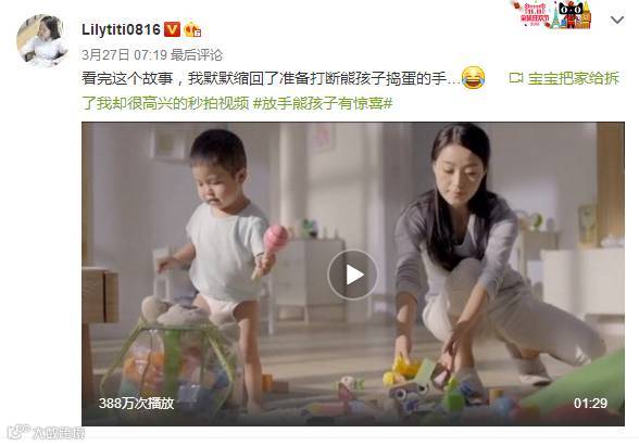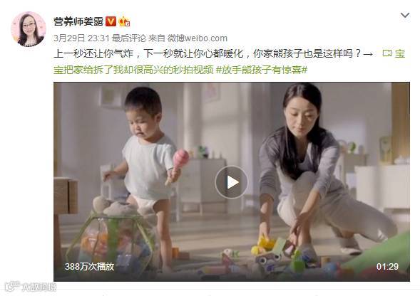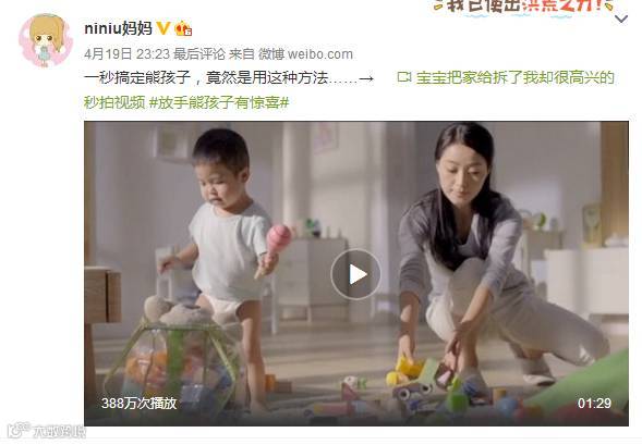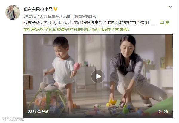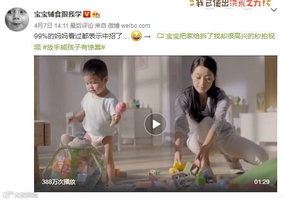 此次帮宝适的产品推广,选取母婴类账号进行投放,抓住“熊孩子”这一热点话题,进行导向性营销,母婴类账号粉丝群体多为年轻妈妈,与帮宝适的客户群体画像重合度较高,帮宝适采用“话题+视频+活动”的形式,让产品的展现更加直观,引发粉丝的热捧,引爆话题。