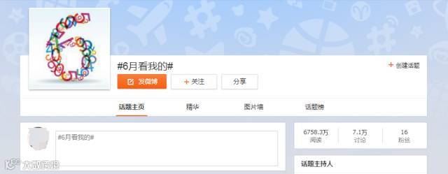 微博话题#6月看我的#累计阅读6758.3万,讨论7.1万。