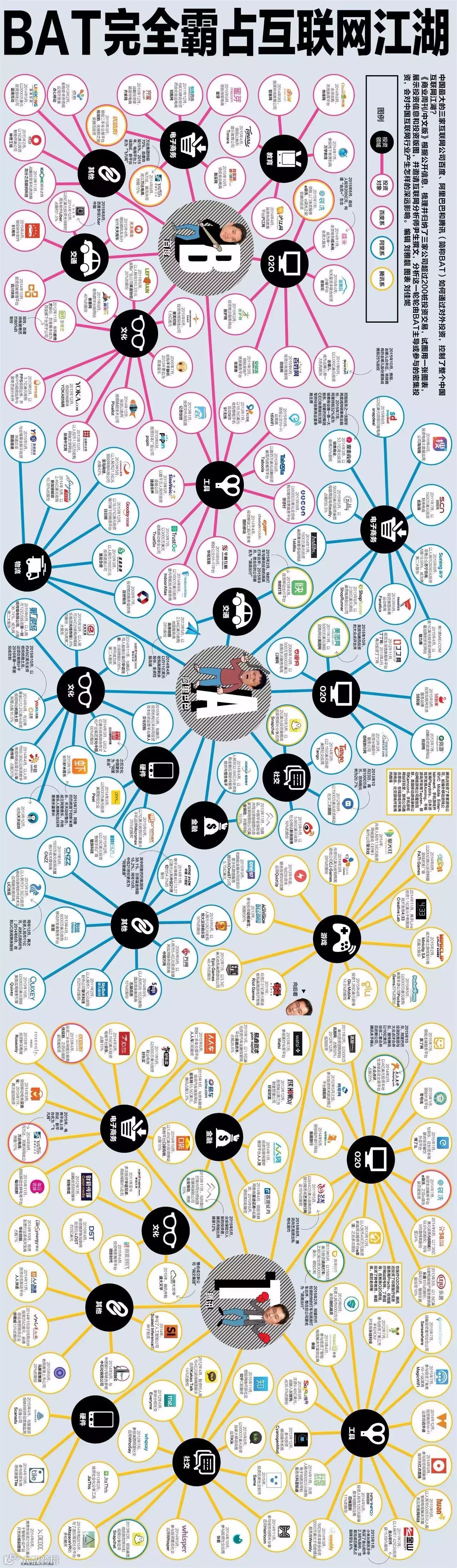 中国互联网无疑已经成为了BAT的天下,要想试图颠覆BAT已经变得非常困难,因为它们真的已经控制了整个中国互联网的江湖,但这三家的版图到底有多大你或许还不知道。