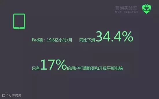 在手机端用户使用时长大幅增长123.5%的同时,Pad却大幅跳水下滑34.4%。