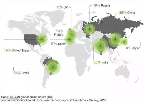 根据Forrester的消费技术消费数据,全球消费者利用社交媒体对当前事件发声,而30%的中国网民乐于在社交网络发表意见,为全球之首: