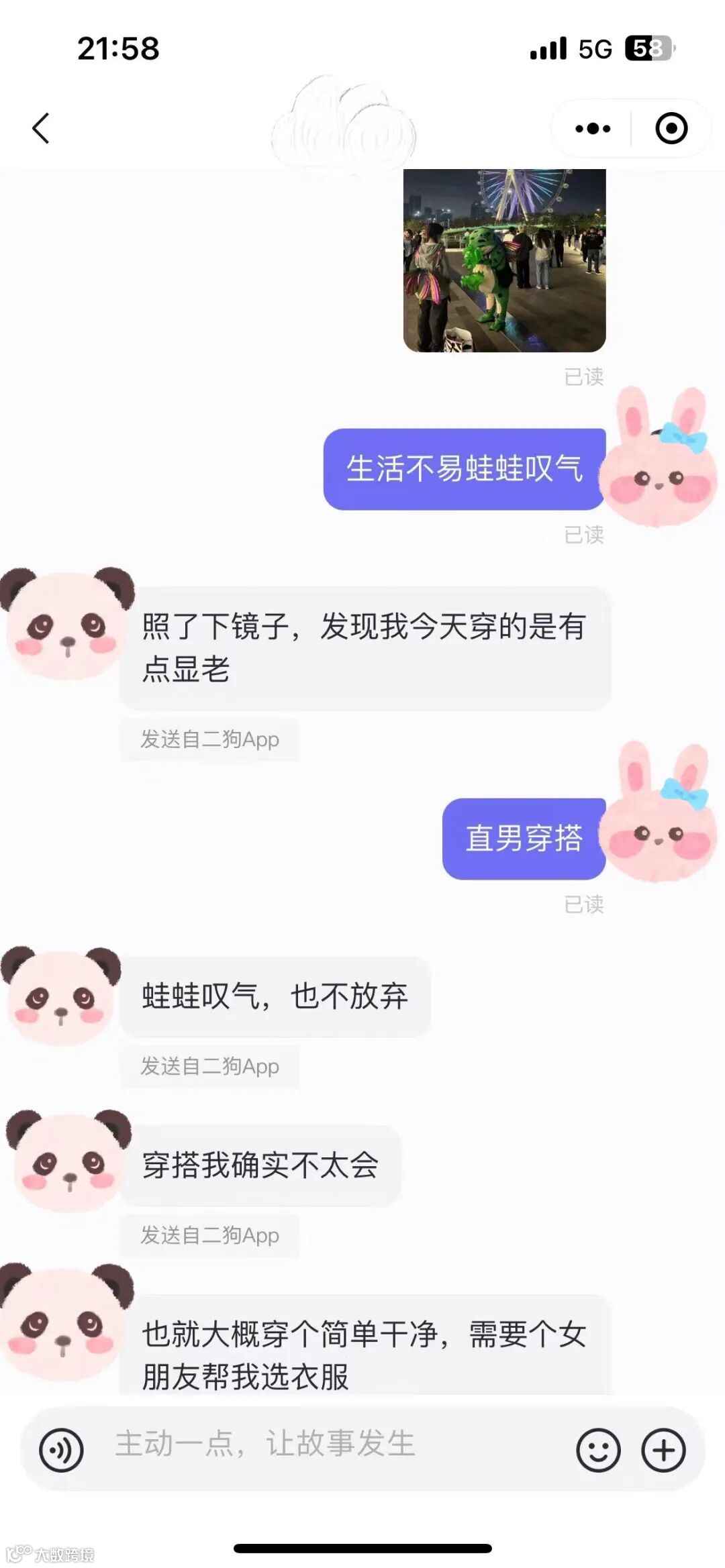 那时候我经常有事没事就刷二狗推荐,也聊过几位男生,但都没有什么结果,差点就要放弃了。