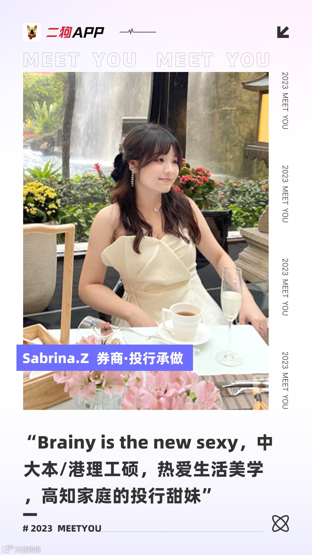 潮州客家人,本科在中山大学,硕士在香港理工大学,国内券商投行工作,性格开朗活泼,美貌不是优势,大脑才是。