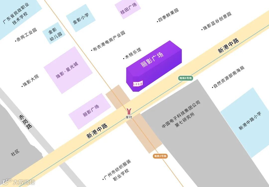本媒体位于丽影广场 中区墙体, 坐落于广州市海珠区核心商圈