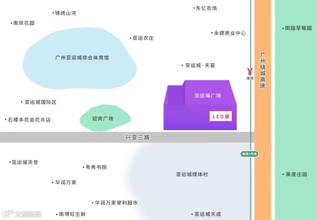亚运城广场位于广州市番禺区石楼镇,毗邻地铁4号线海傍站,总建筑面积达6万平方米,地上4层及地下负一楼停车场,配套700多个停车位