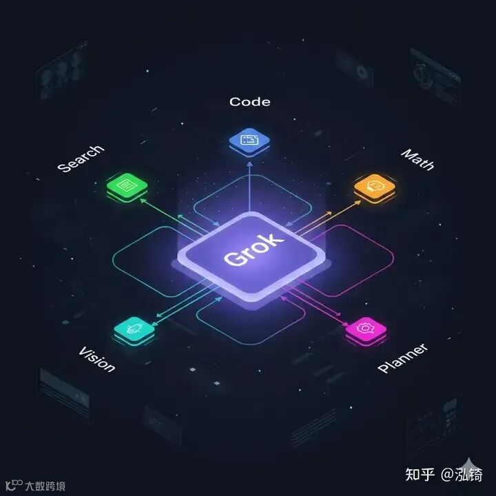 总而言之,Grok 技术栈已从单一的 MoE 模型发展成为一个具有多模态能力、显式推理模式和协同多智能体行为的模型家族。独立分析表明,xAI 将继续依赖稀疏的 MoE 层、大的上下文窗口和大量的工具使用集成,所有这些都围绕着 xAI 所推崇的“寻求真相”和实时理念进行优化,而 xAI 正是将这种理念作为其差异化优势。