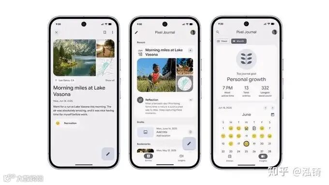 借助设备端AI,像素日记会给予温和的提示,帮助你反思、成长,并专注于你的目标。