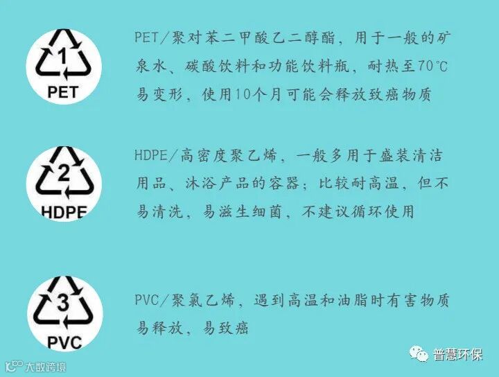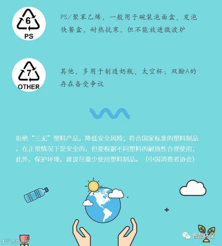 美国塑料工业协会(Society of Plastics Industry,SPI)制定了塑料制品使用的塑料种类的标志代码,是在三个箭头组成的代表循环的三角形中间,加上数字的标志,他们将三角形的回收标记附于塑料制品上,并用数字1到7和英文缩写来指代塑料所使用的树脂种类。这样一来,塑料品种的识别就变得简单而容易,回收成本得到了大幅度的削减。现今世界上的许多国家都采用了这套SPI的标识方案。中国在1996年制定了与之几乎相同的标识标准。