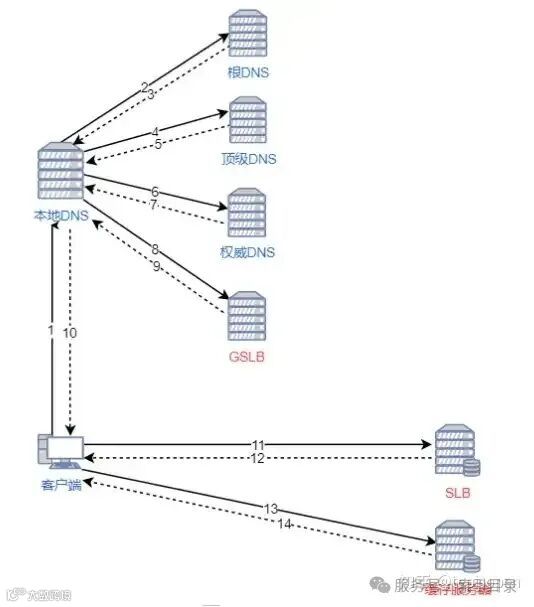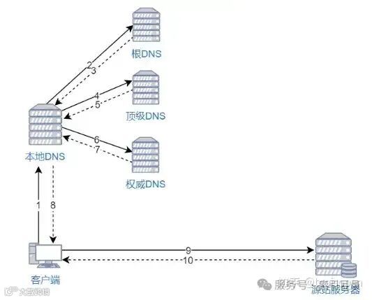 本地DNS依次向根服务器、顶级域名服务器、权威服务器发出请求,获取网站服务器的IP地址。