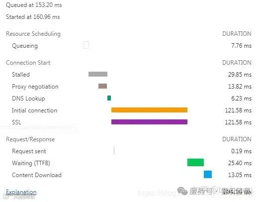 Stalled:TCP 连接建立到实际可以传输数据之间的时间差,包括代理协商时间。