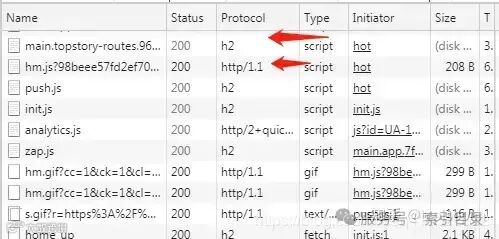 其中“h2”指的是HTTP2协议,“http/1.1”指的是HTTP1.1协议。