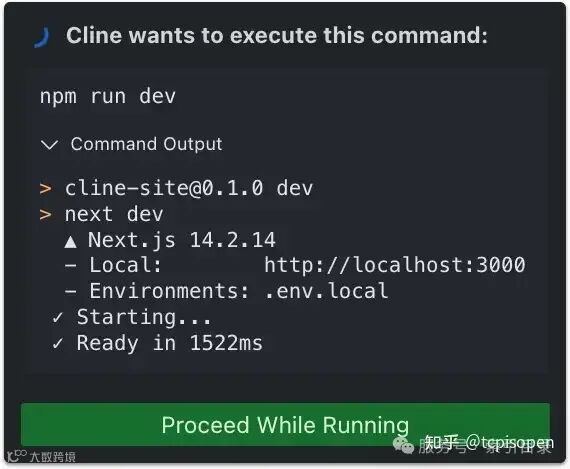 Cline 可以直接在您的终端中执行命令并接收输出。