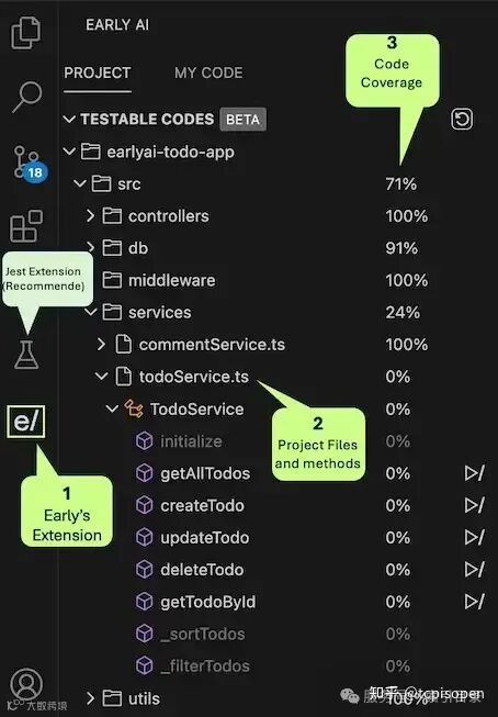 EarlyAI 扩展显示项目每个文件和文件夹的代码覆盖率百分比。