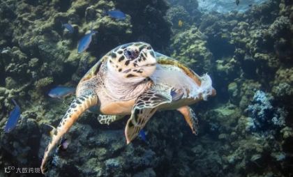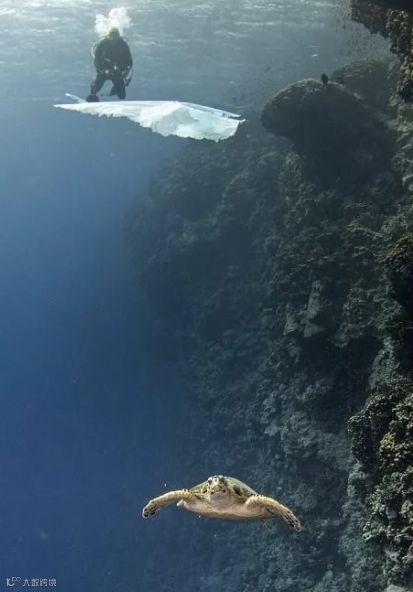 还有一位潜水大叔在海底发现被塑料卡住喉咙的海龟。
