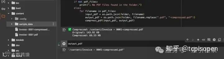 此代码使用 try-except 块处理压缩过程中的错误。如果出现问题,它会捕获异常并打印一条错误消息,显示失败的文件及其原因。然后,在主执行块中,它会设置 PDF 文件所在的文件夹路径(在本例中为 /content)。