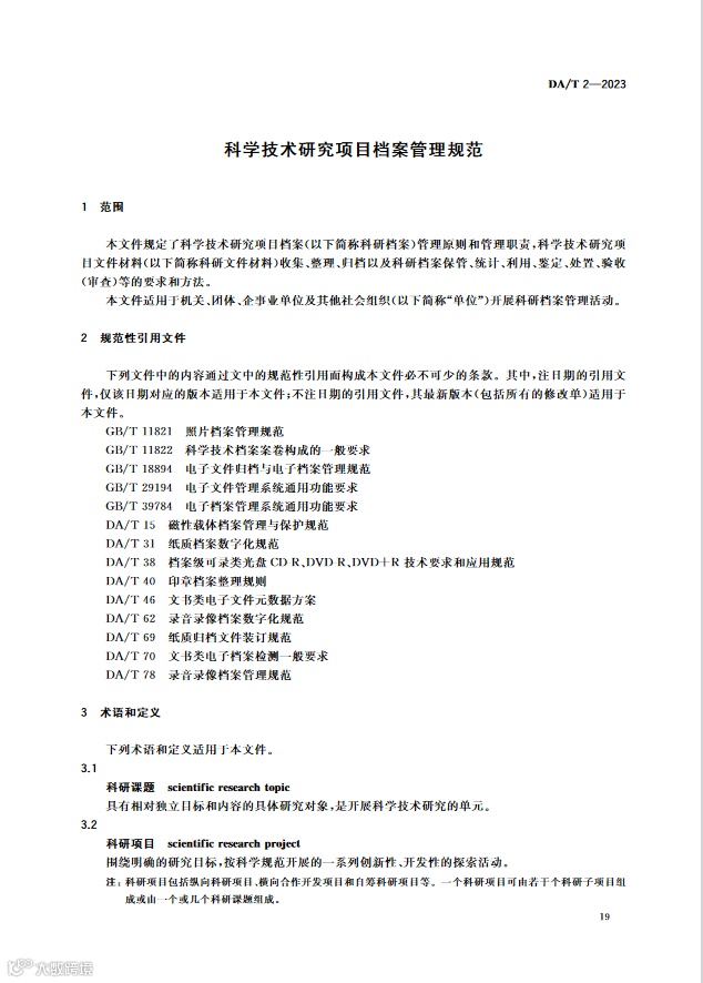 【行业标准】DA/T 2-2023 科学技术研究项目档案管理规范