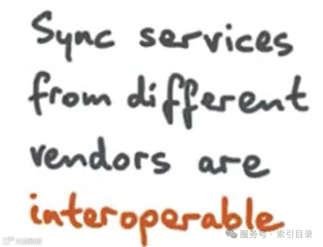 解决方案是使用一种通用且可能会长时间存在的工具。我们需要的是一个普遍可用、人人都能访问、且有多个实现版本的同步服务作为后端支持。